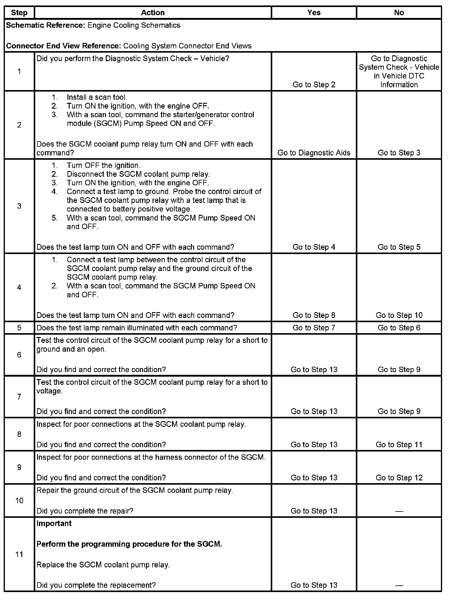 4. Tests for an open in the ground circuit to the SGCM coolant pump relay.