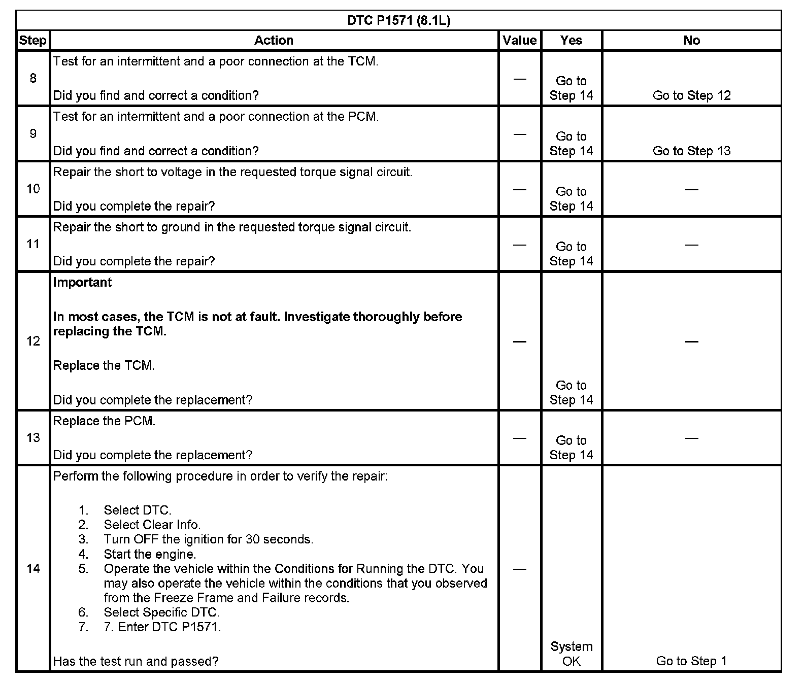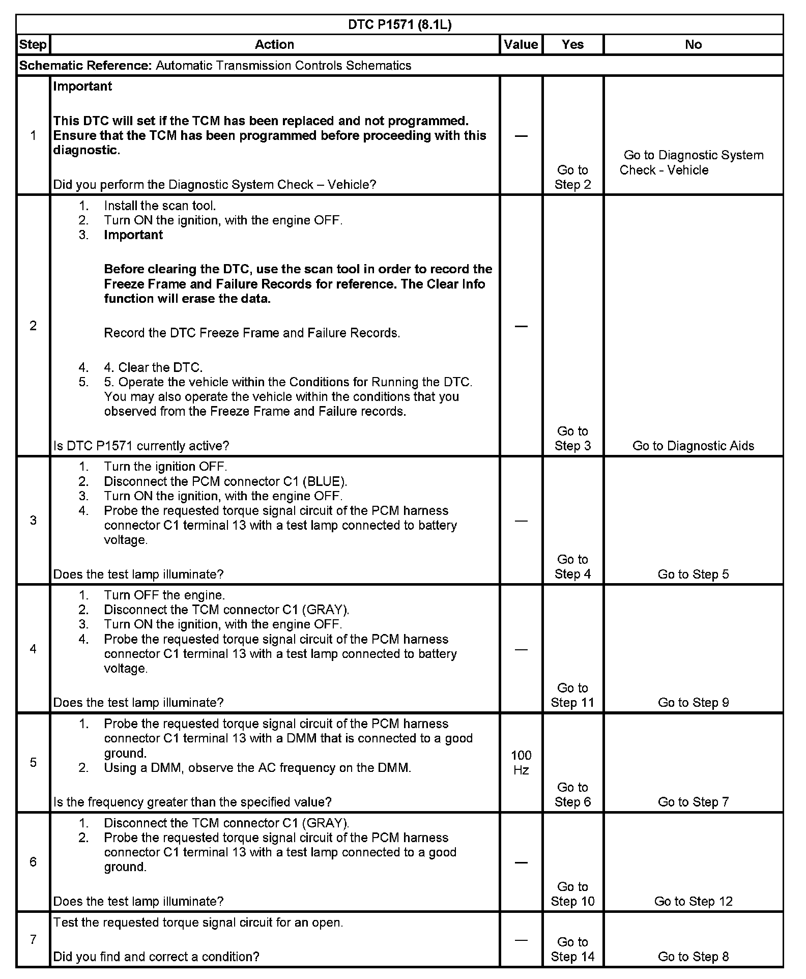 ^ The TCM illuminates the malfunction indicator lamp (MIL) during the second consecutive trip in which the Conditions for Setting the DTC are met.