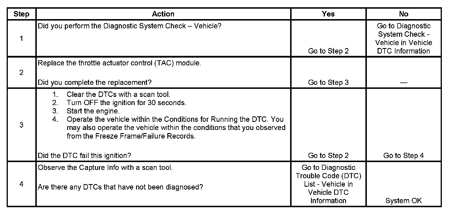 - When the TAC module detects a condition within the TAC System, more than 1 TAC System related DTC may set. This is due to the many redundant tests run continuously on this system. Locating and repairing an individual condition may correct more than 1 DTC. Disconnecting components during testing may set additional DTCs. Remember this if you review the stored information in Capture Info.