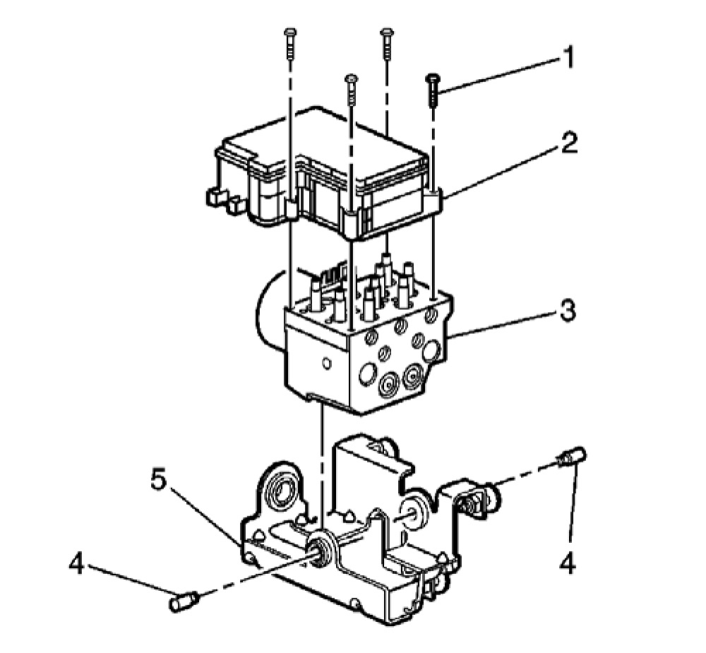 Tighten the 3 EHCU bracket bolts (4) to 25 Nm (18 lb ft).
