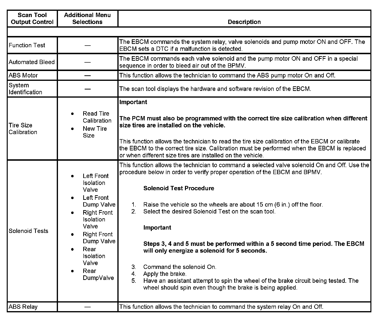 Scan Tool Output Controls (Over 8600 or W/Rear Drums Brakes)