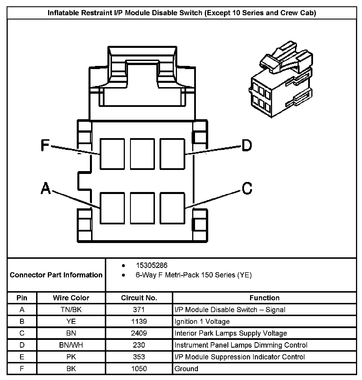 Inflatable Restraint I/P Module Disable Switch (Except 10 Series And Crew Cab):