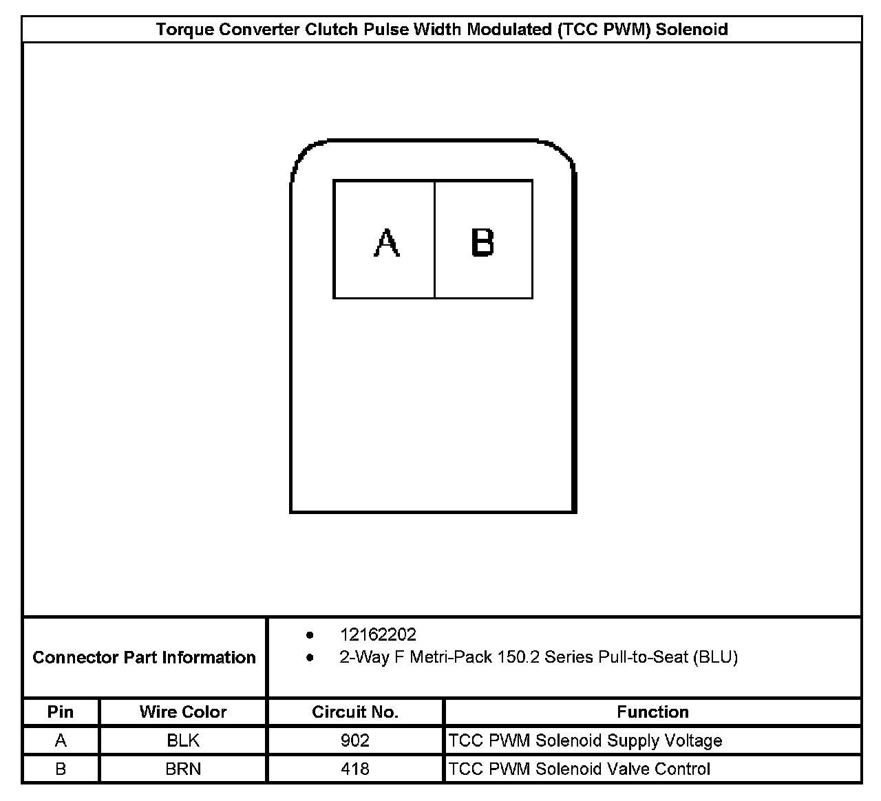 Torque Converter Clutch Pulse Width Modulated (TCC PWM) Solenoid: