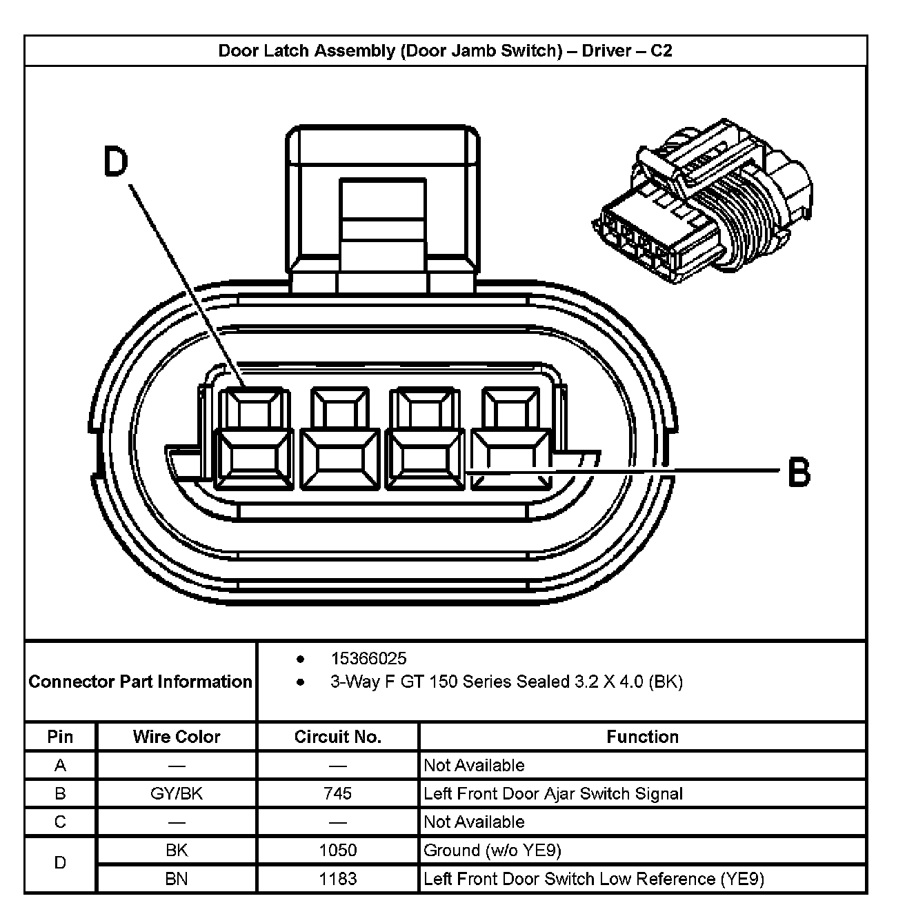 Door Latch Assembly (Door Jamb Switch) - Driver C2:
