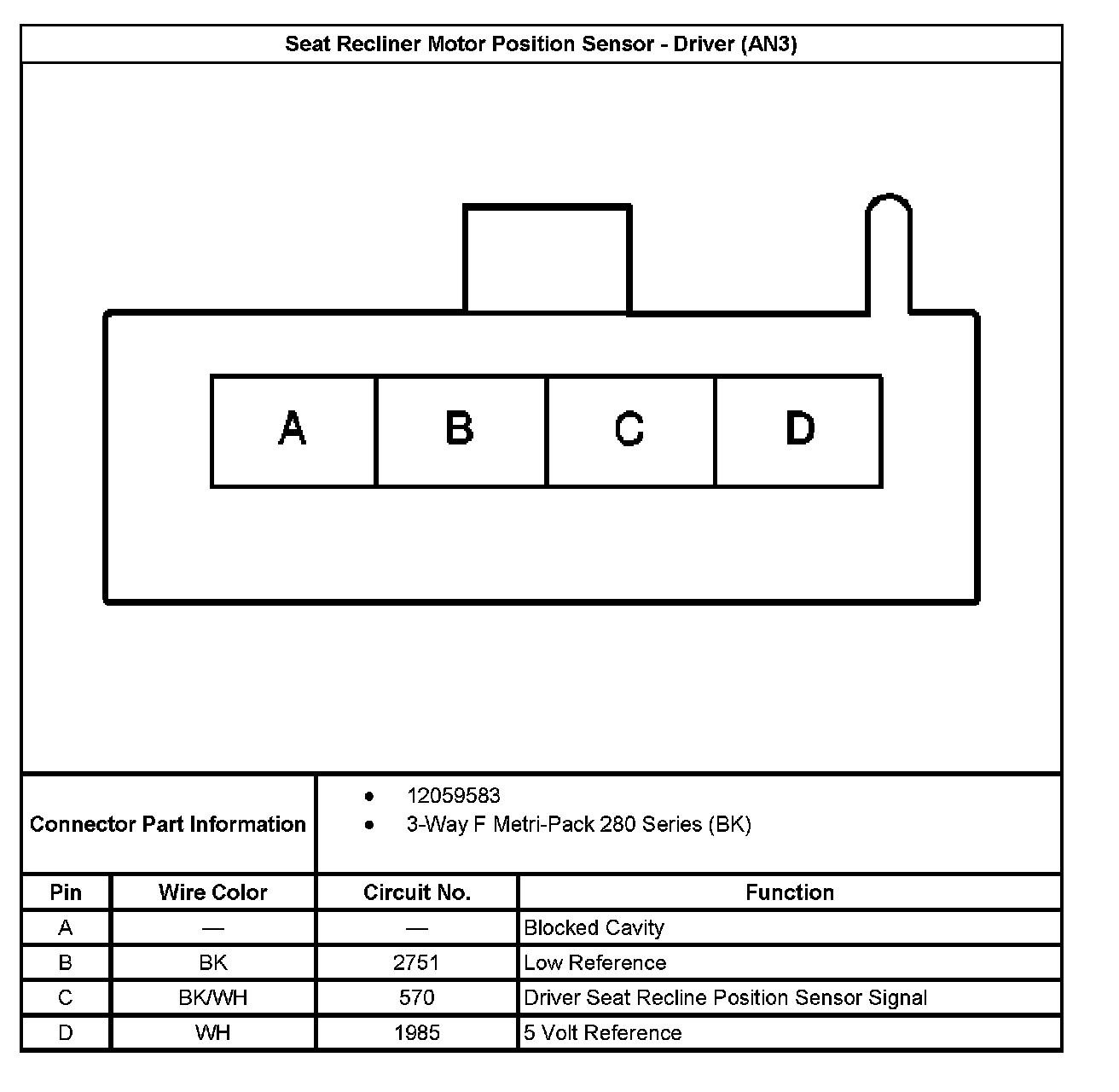 Seat Recliner Motor Position Sensor - Driver (With RPO Code AN3):