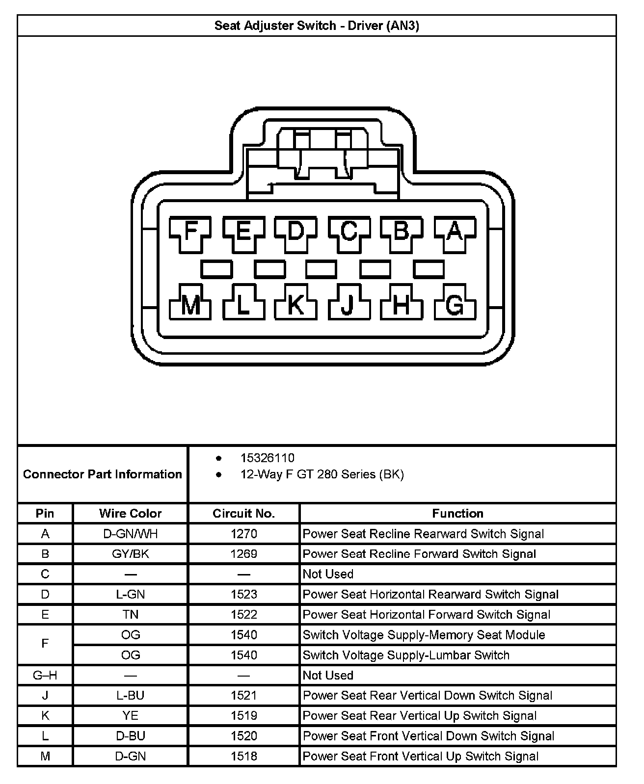 Seat Adjuster Switch - Driver (With RPO Code AN3):