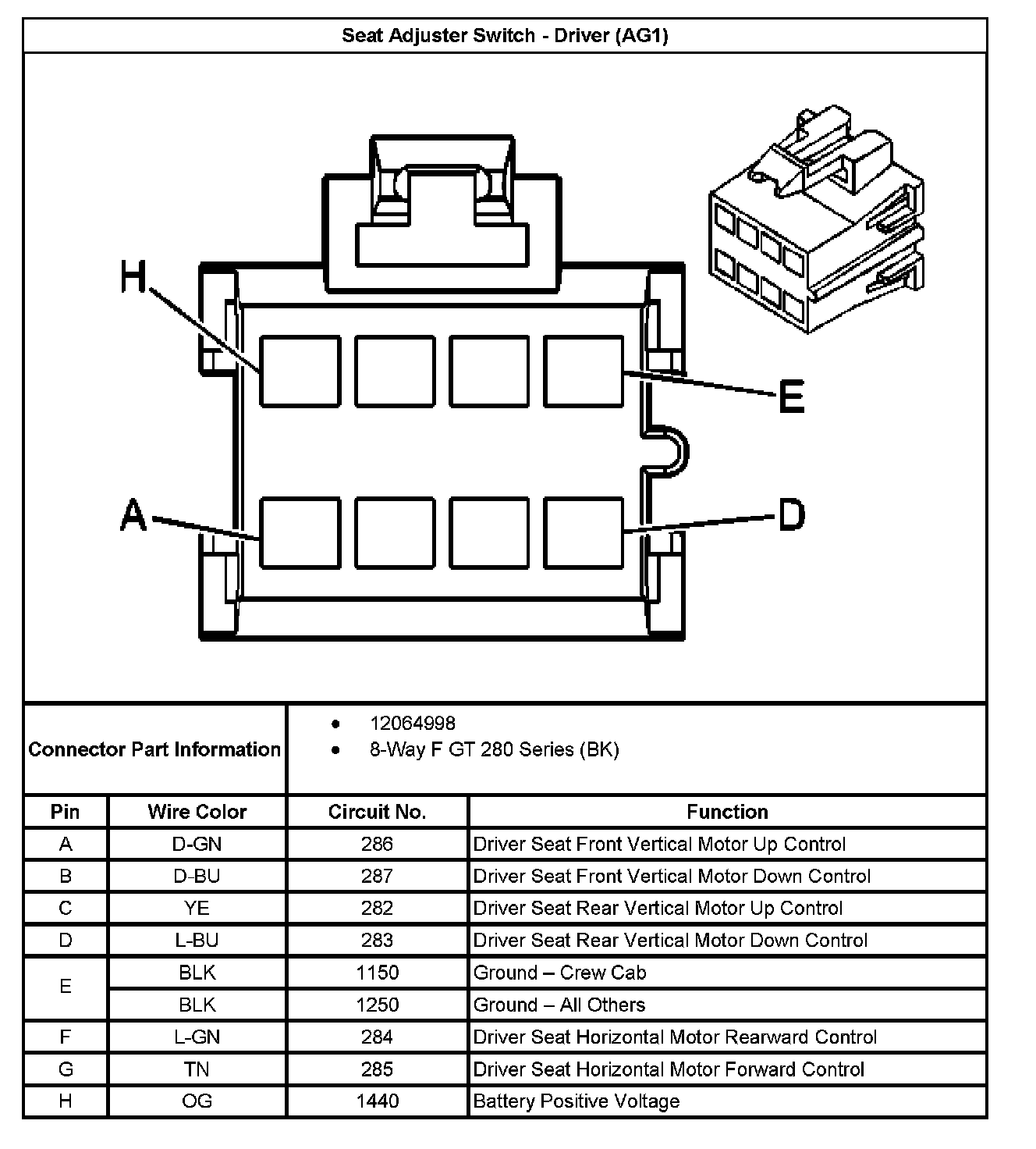 Seat Adjuster Switch - Driver (With RPO Code AG1):