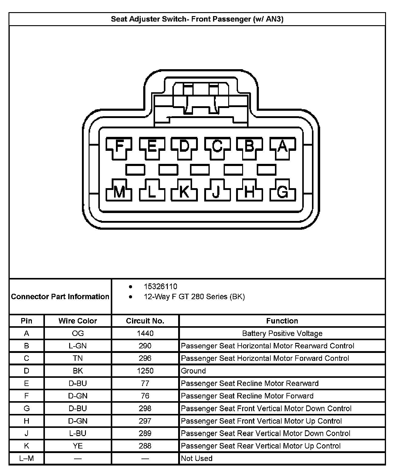 Seat Adjuster Switch - Front Passenger (With RPO Code AN3):