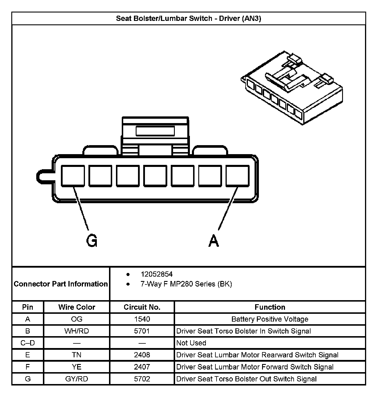 Seat Bolster/Lumbar Switch - Driver (With RPO Code AN3):