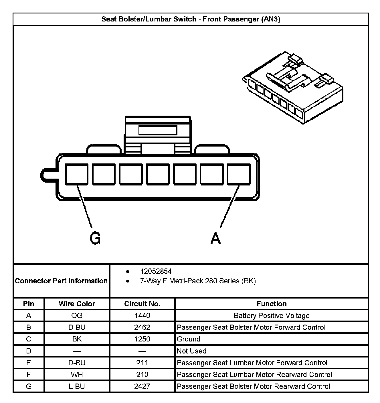 Seat Bolster/Lumbar Switch - Front Passenger (With RPO Code AN3):