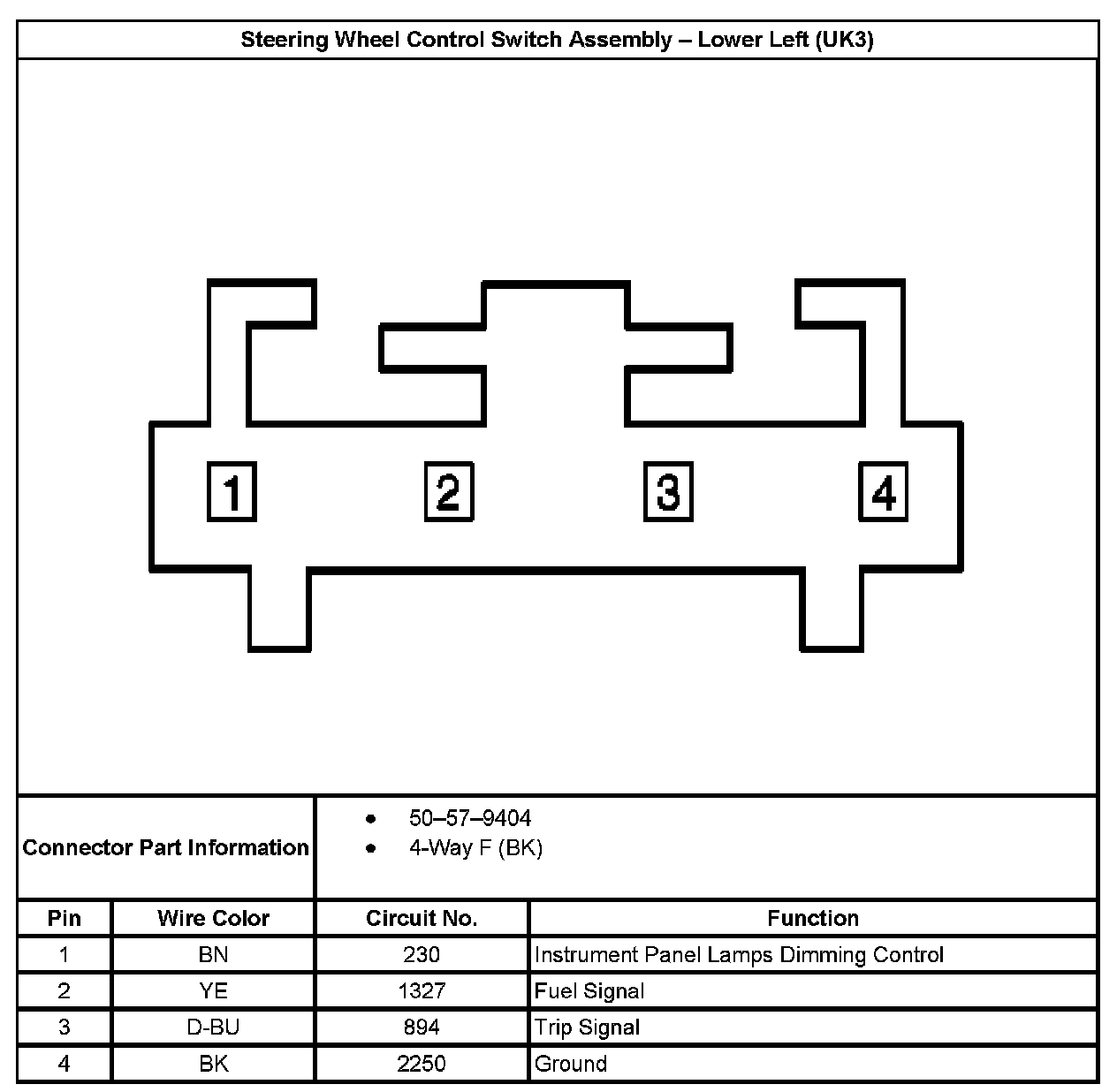 Steering Wheel Control Switch Assembly - Lower Left (With RPO Code UK3):
