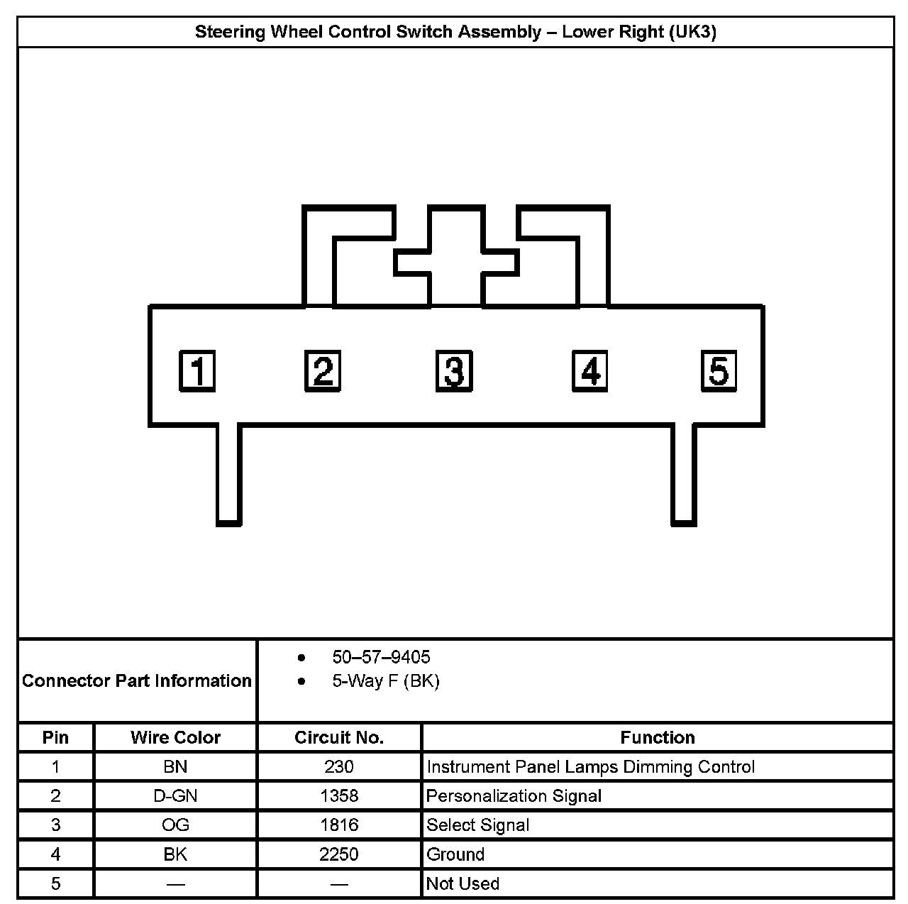 Steering Wheel Control Switch Assembly - Lower Right (With RPO Code UK3):