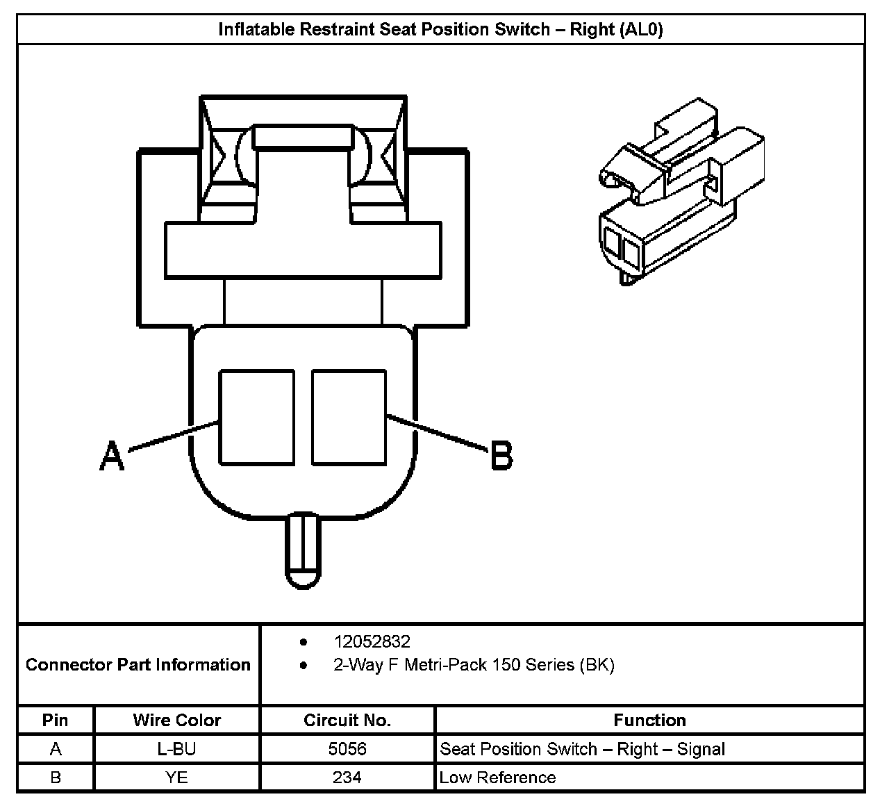 Inflatable Restraint Seat Position Switch - Right (With RPO Code ALO):