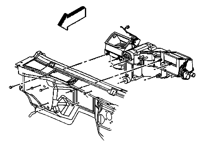 10. Remove the heater/vent module mounting nuts and the screws.