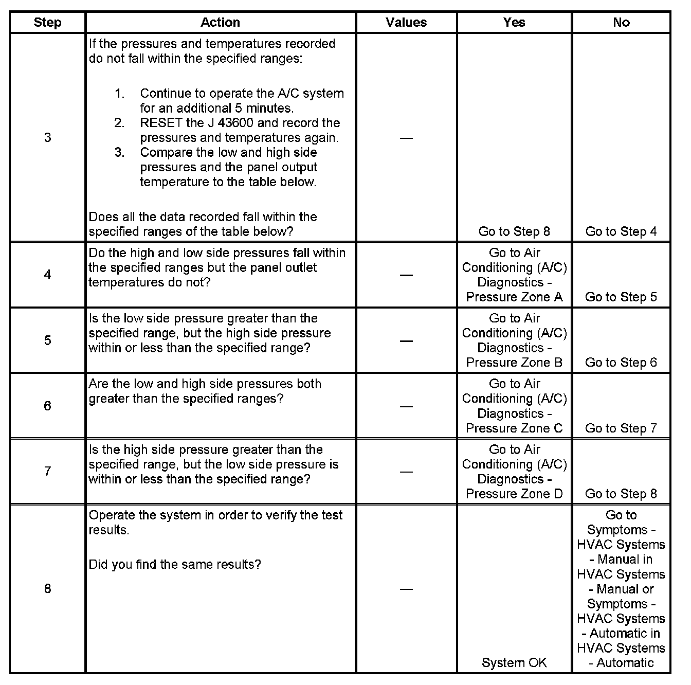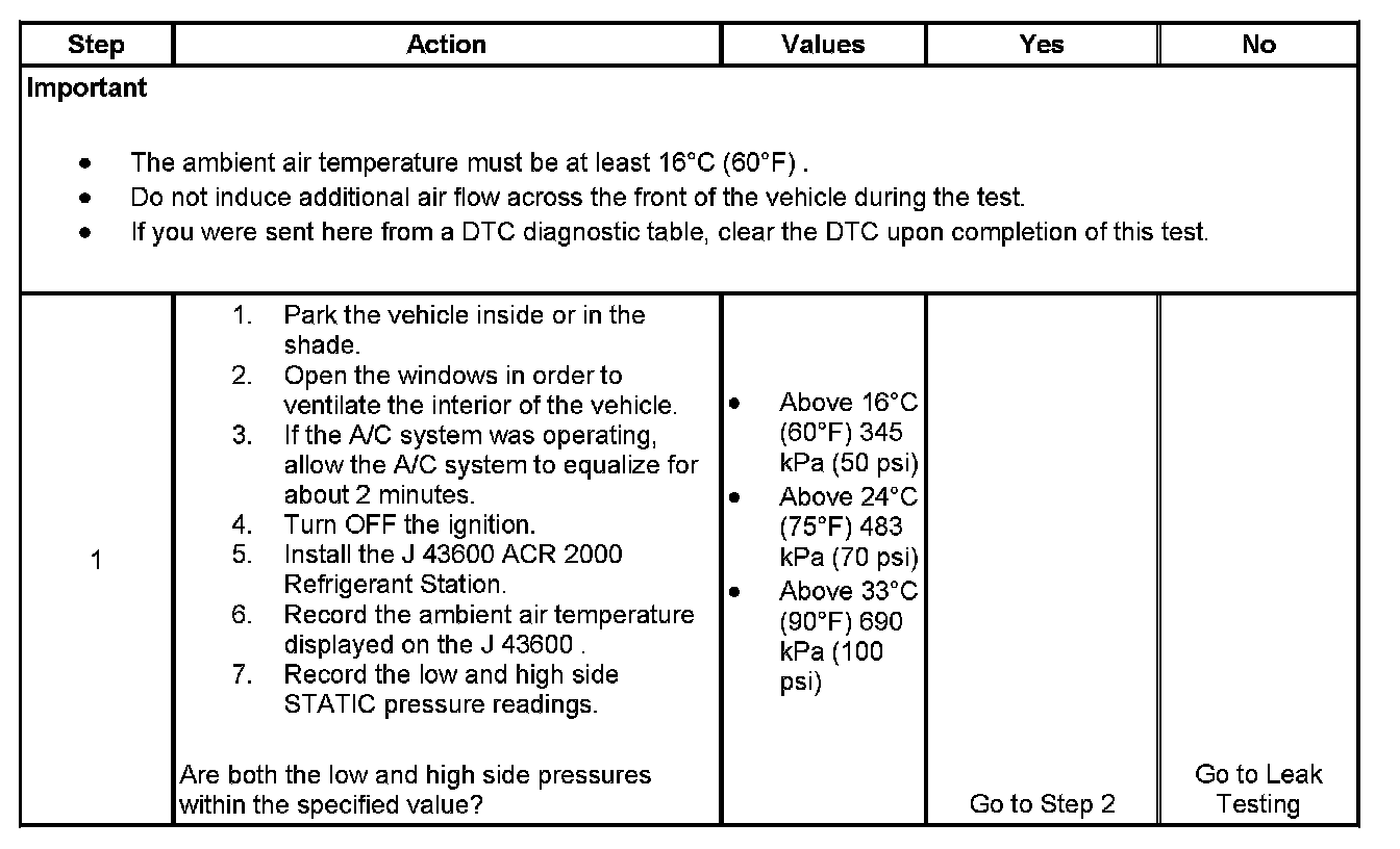 1. This step determines if the A/C system has at least the minimum refrigerant charge required to operate the system without damage.