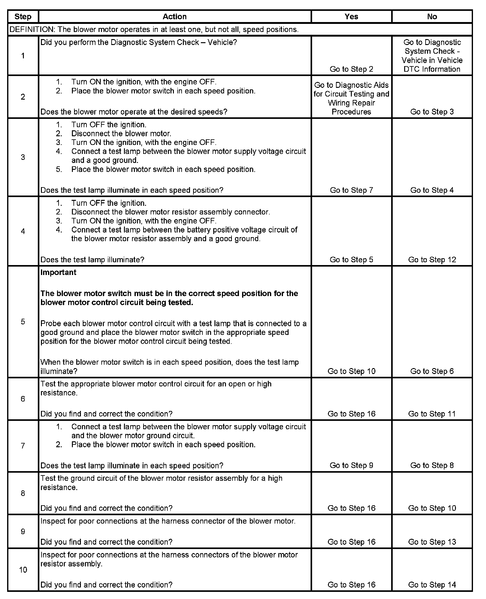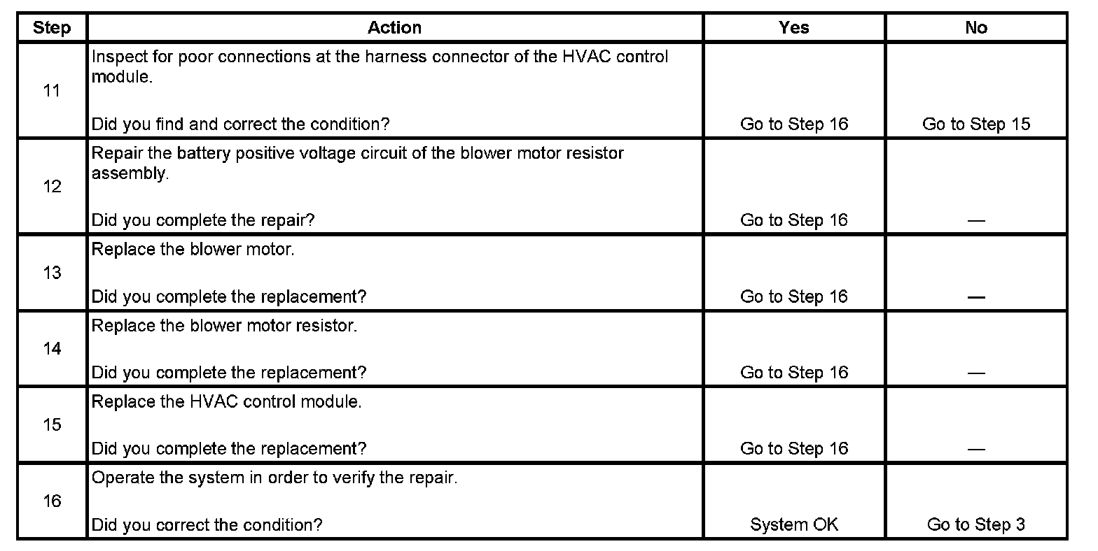 5. This step tests the output of the blower motor switch in each speed position and through each blower motor control circuit.