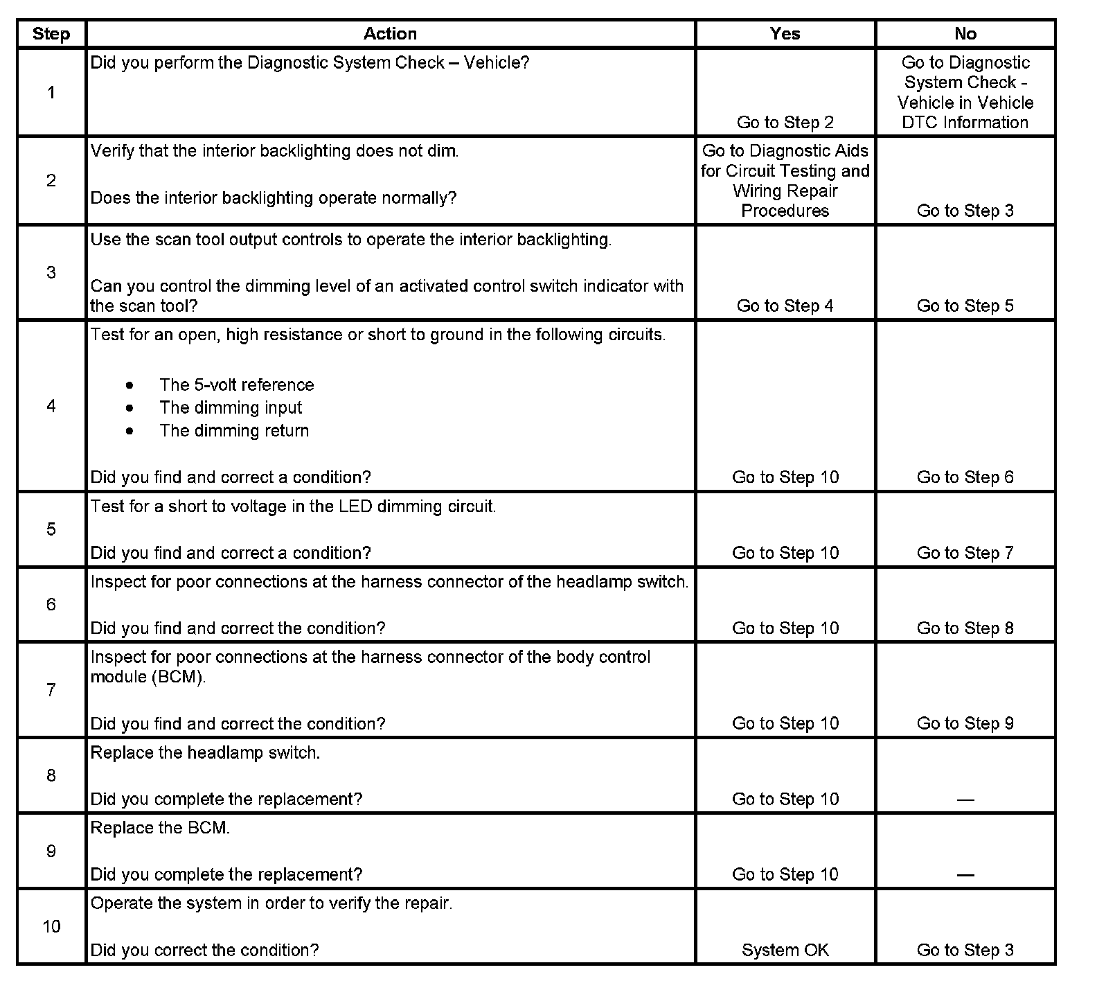 Interior Backlighting Does Not Dim