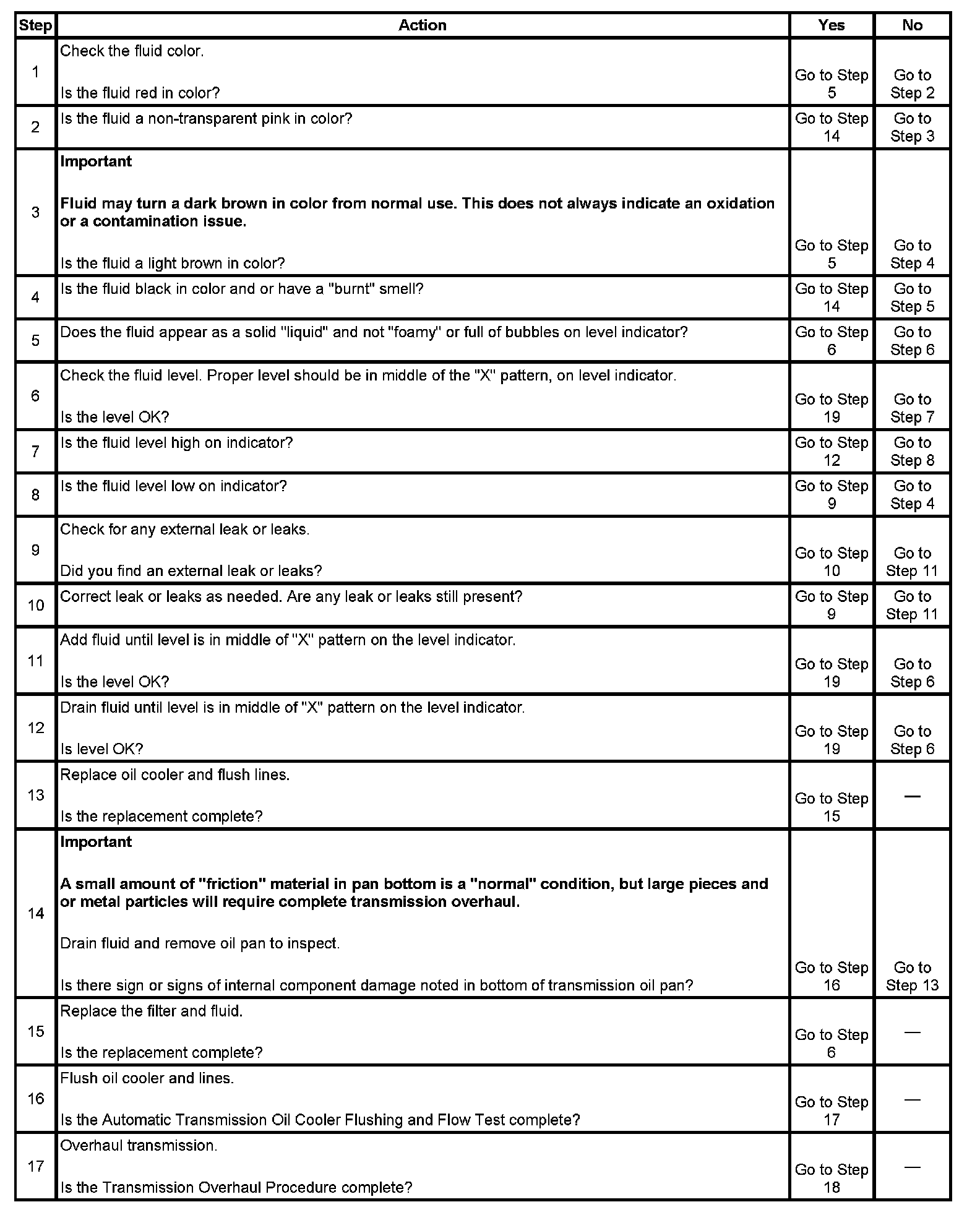 Transmission Fluid Level and Condition Check