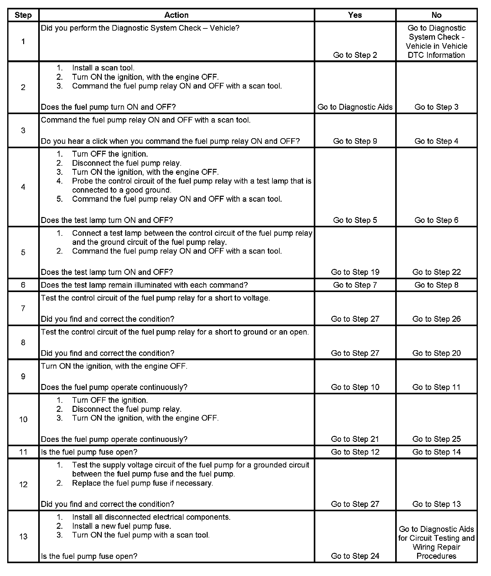 Fuel Pump Electrical Circuit Diagnosis
