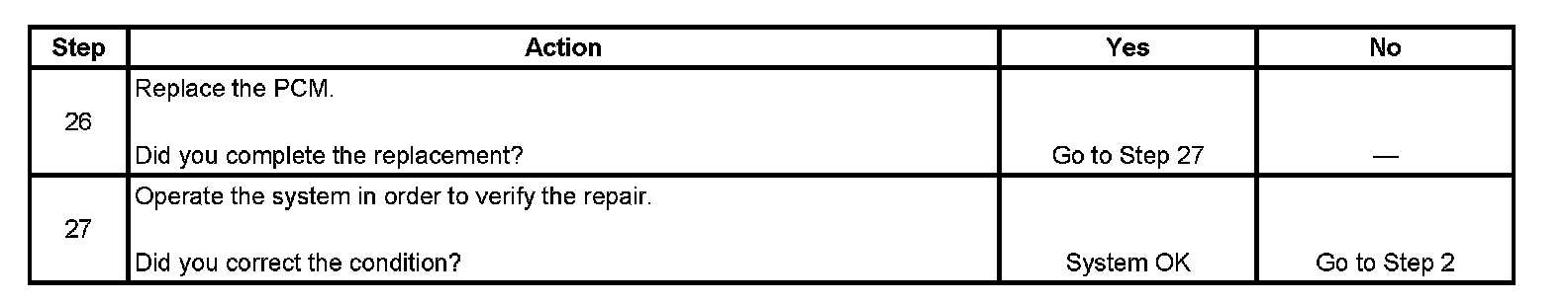 The numbers below refer to the step numbers on the diagnostic table.