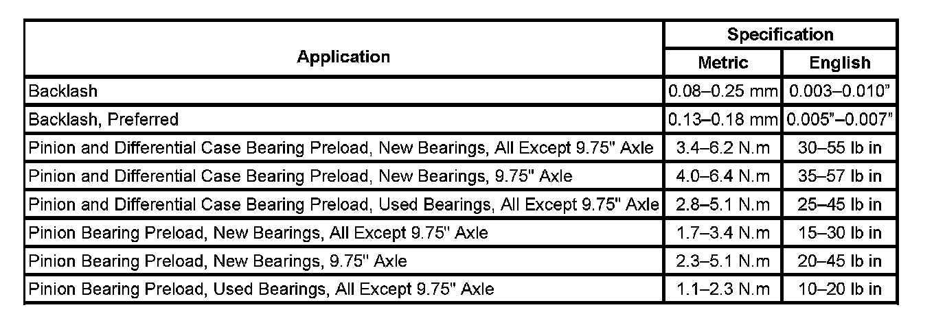 Axle Preload and Backlash Specifications
