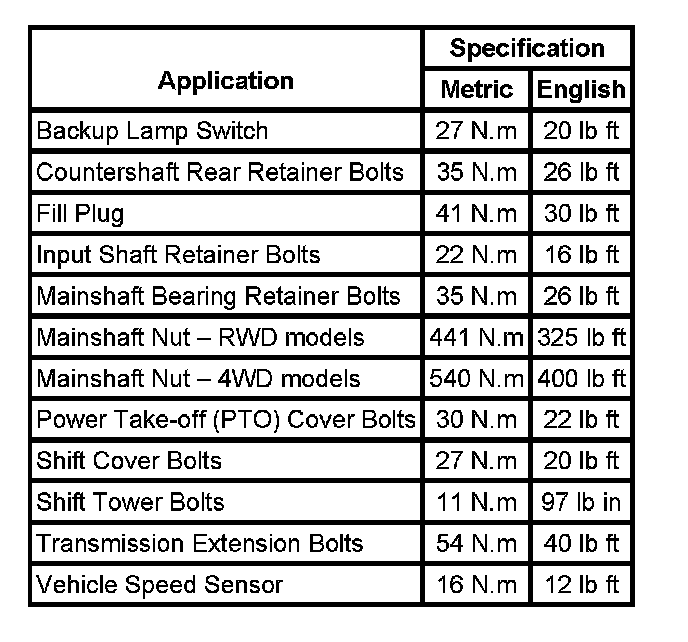 Fastener Tightening Specifications: