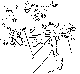 2. Remove the two bolts (2). Remove the reverse signal tube (1).
