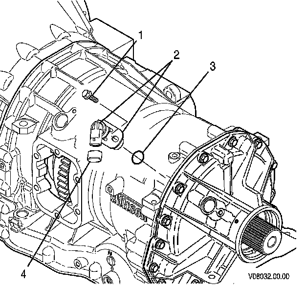 1. Install the vehicle speed sensor O-ring (3) onto the output speed sensor (OSS) (2).
