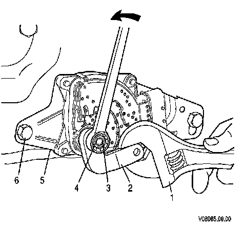1. Hold the selector lever (2) from rotating with a wrench (1) and remove the shift lever nut (3) from the manual shift shaft (4).