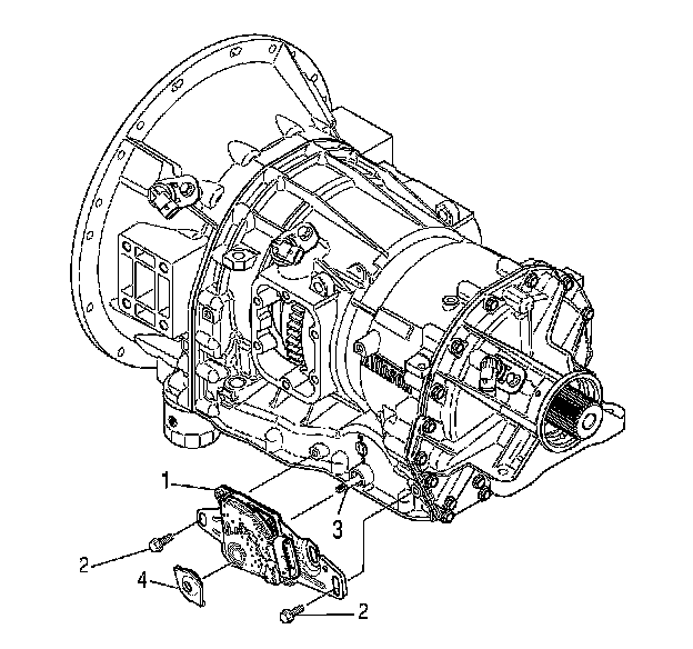 4. Inspect the manual shift shaft (3) for burrs or raised metal where the selector lever seats. Remove any burrs or raised metal with a small file.