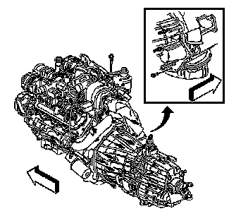 4. Position the transmission to the engine. Do not use the transmission bolts to draw up the transmission.