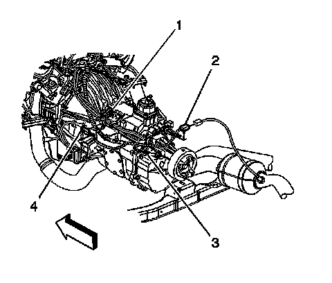 2. Disconnect the vehicle speed sensor (VSS) electrical connector (3).