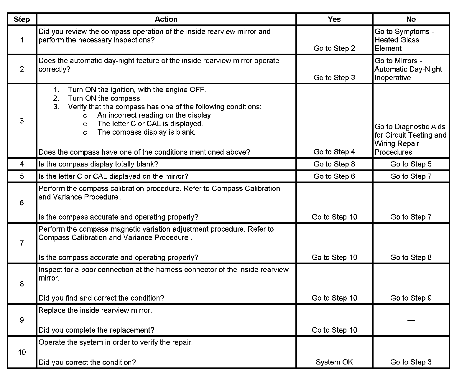 Compass Display Inoperative Or Inaccurate - Mirrors