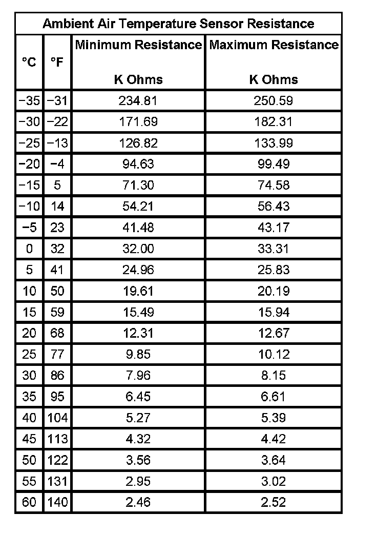 Ambient Air Temperature Sensor Resistance: