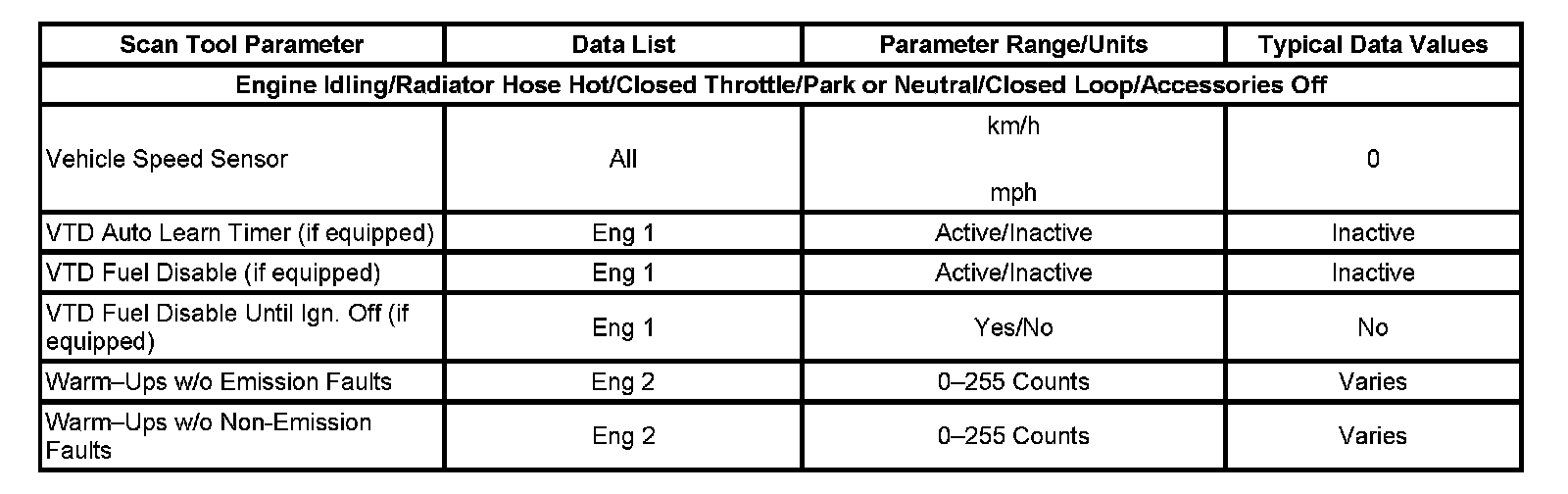 Only the parameters listed below are referenced in this service data for use in diagnosis. If all values are within the typical range described below, refer to Symptoms - Computers and Control Systems for diagnosis. Symptom Related Diagnostic Procedures