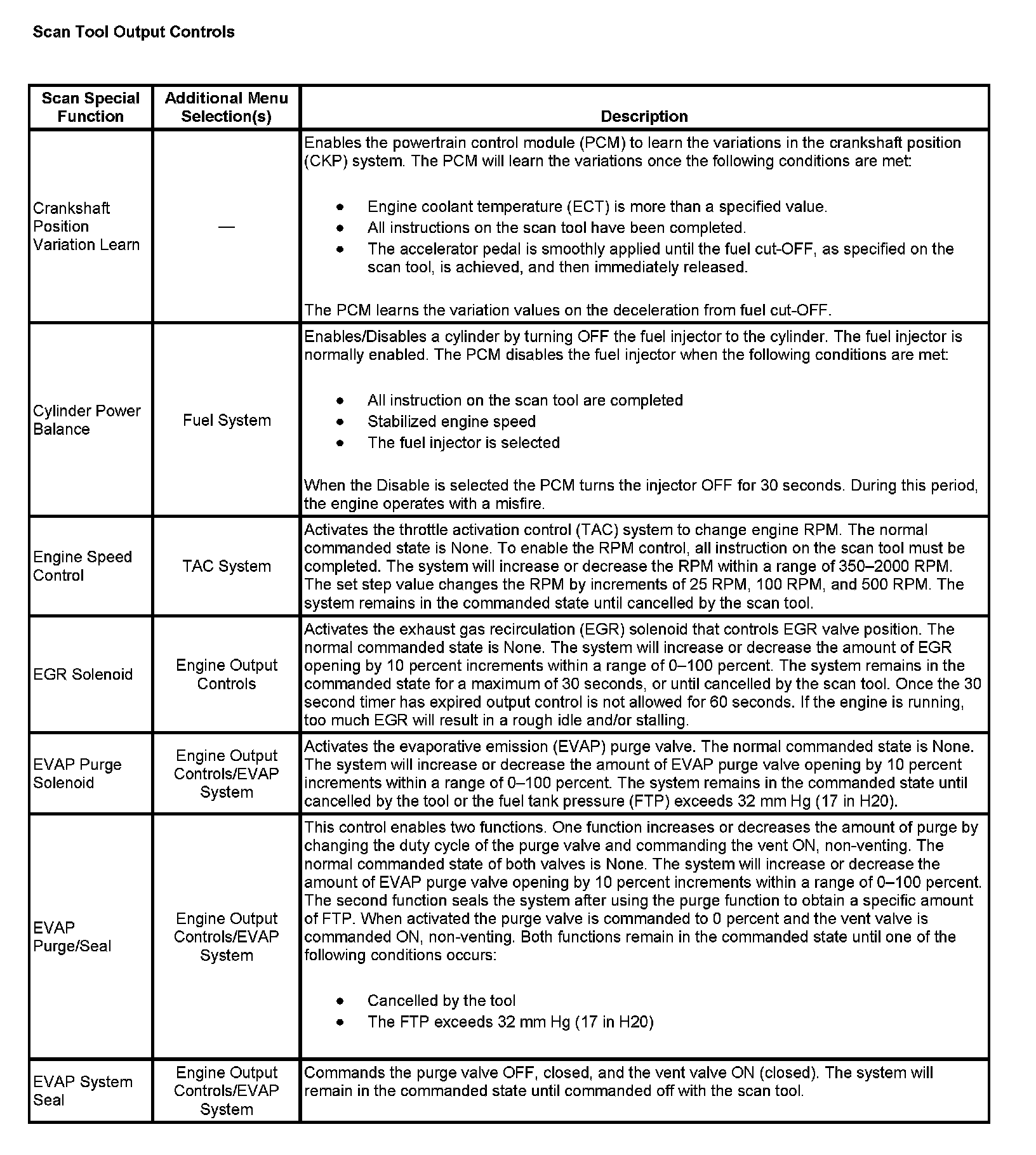 Scan Tool Output Controls