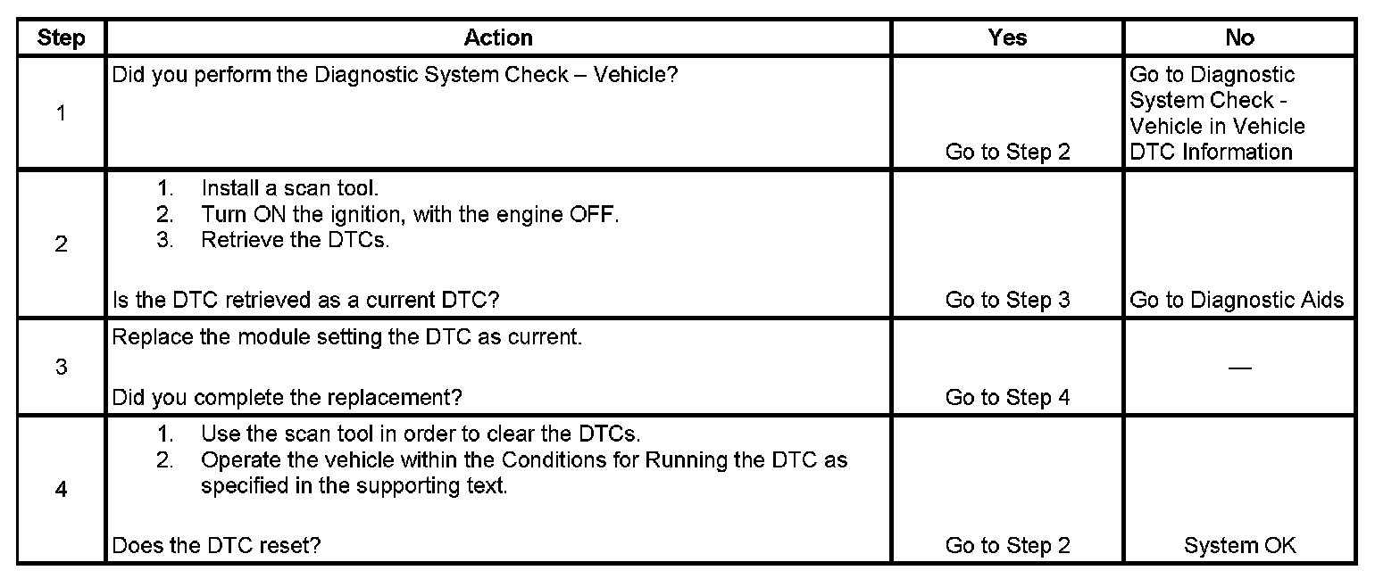 - If this DTC is retrieved as both a current and history DTC, replace the module.