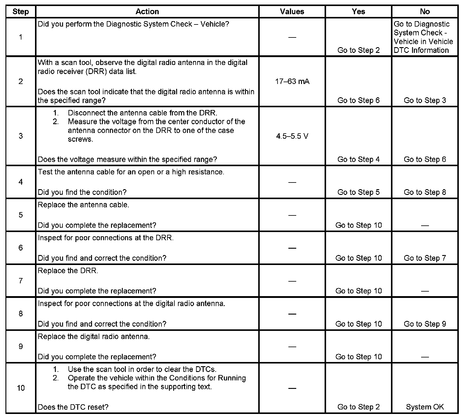 The digital radio antenna is connected to the digital radio receiver (DRR) by a 2 piece 2-wire cable. This cable carries the satellite and the terrestrial signal. The antenna cable also provides a path for DC current for powering the antenna.