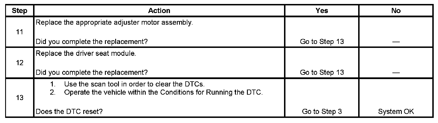 - The memory recall functions for the seat motor with a current status DTC will be disabled.