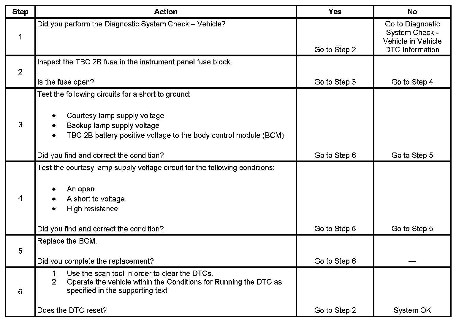 - A short to ground on the backup lamp supply voltage circuit, courtesy lamp supply voltage circuit OR the TBC 2B battery positive voltage circuit to the BCM will open the TBC 2B fuse in the left instrument panel fuse block.