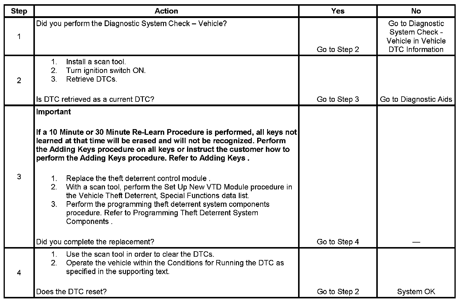 1. Ensure that a learned master ignition key is being used when performing the Vehicle Theft Deterrent Diagnostic System Check.