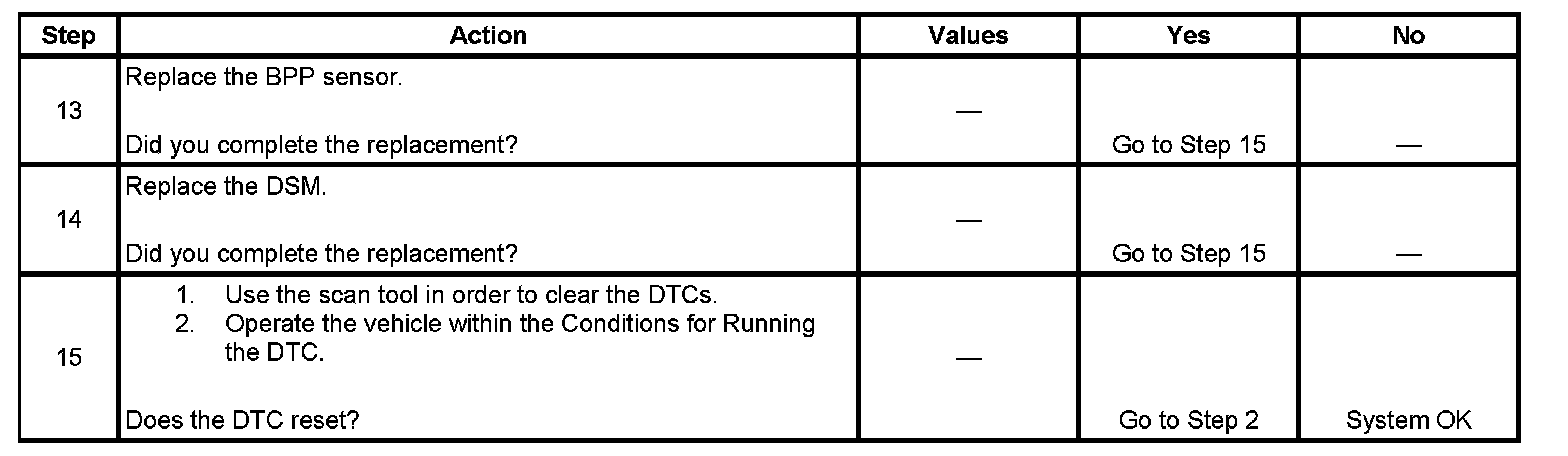 The numbers below refer to the step numbers on the diagnostic table.