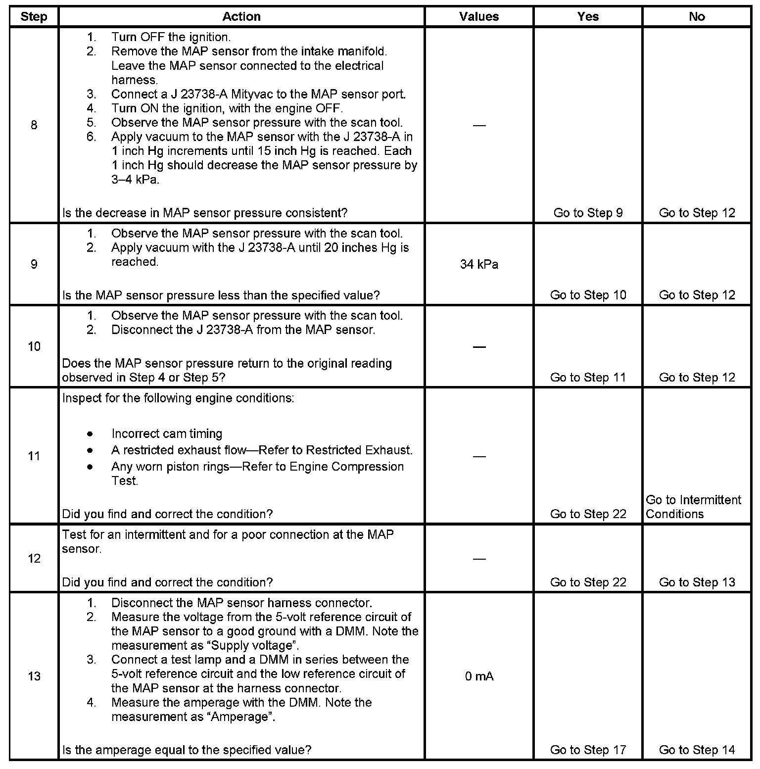 9. This step tests for a proper MAP sensor pressure with an applied vacuum.