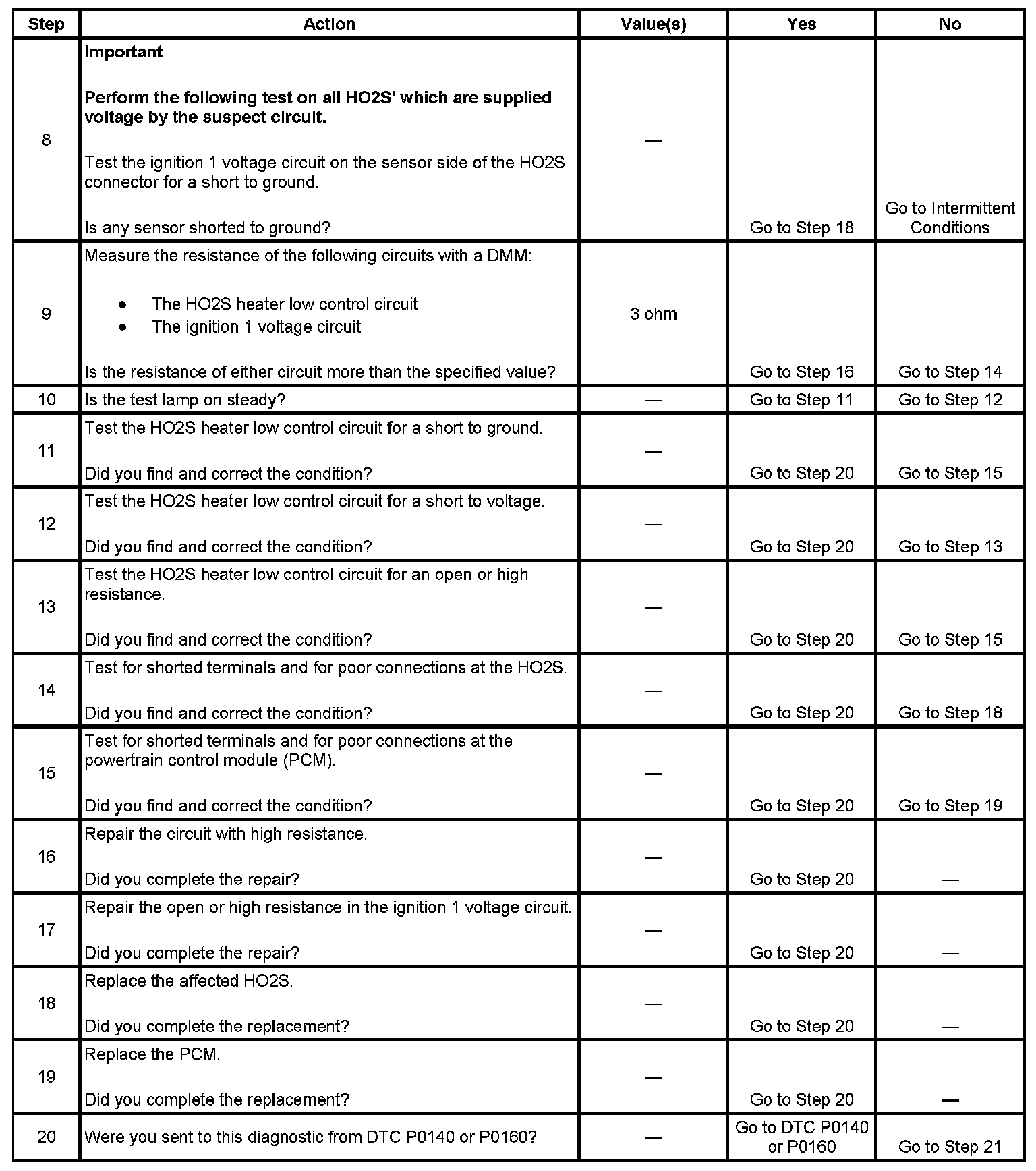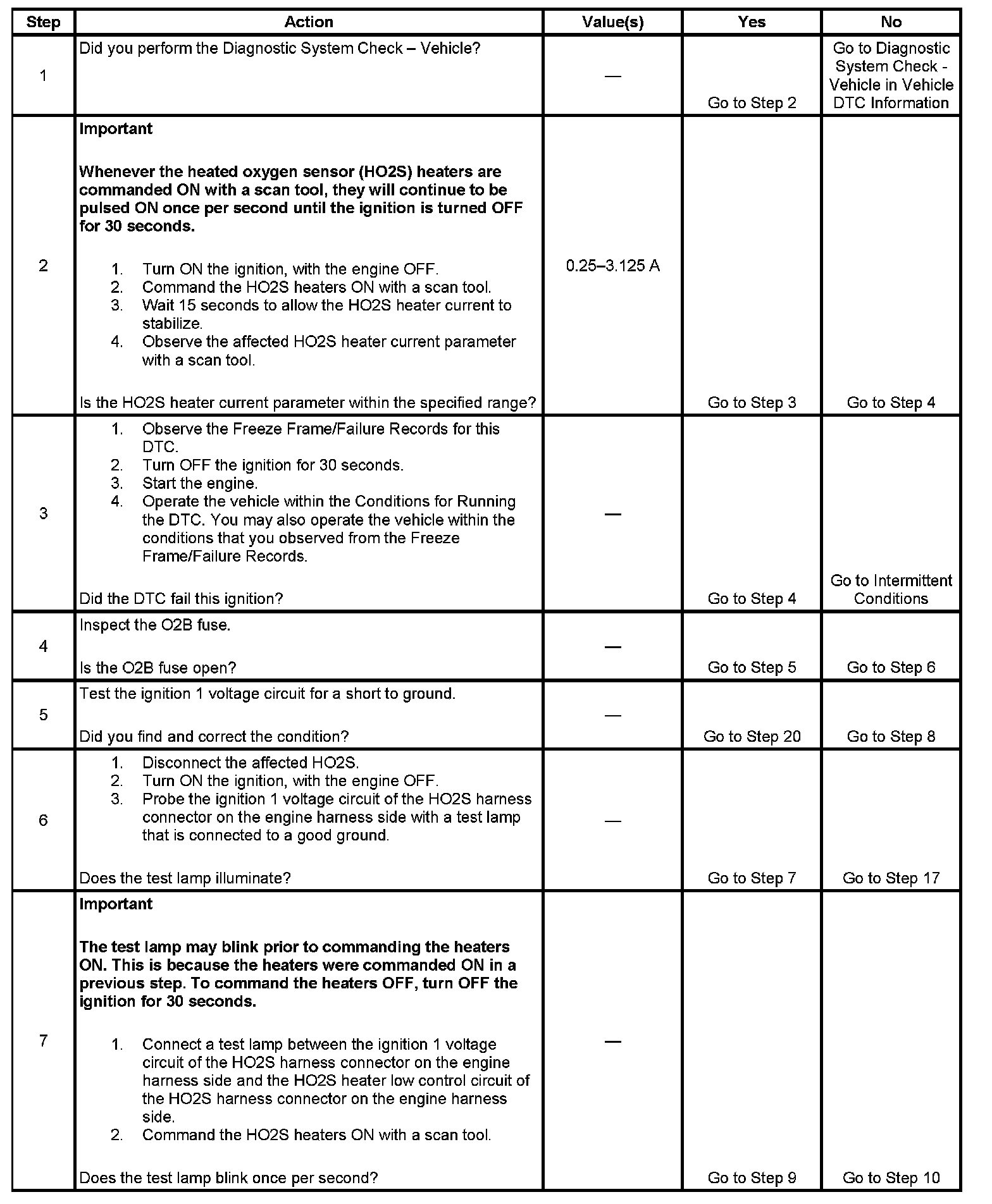 - The PCM detects that the affected HO2S Heater current parameter is greater than 3.125 amps or less than 0.25 amps.