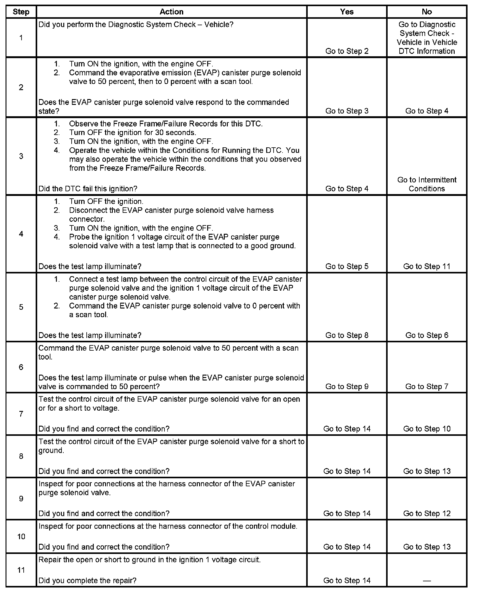 6. This step tests if a ground is constantly being applied to the EVAP canister purge solenoid valve.