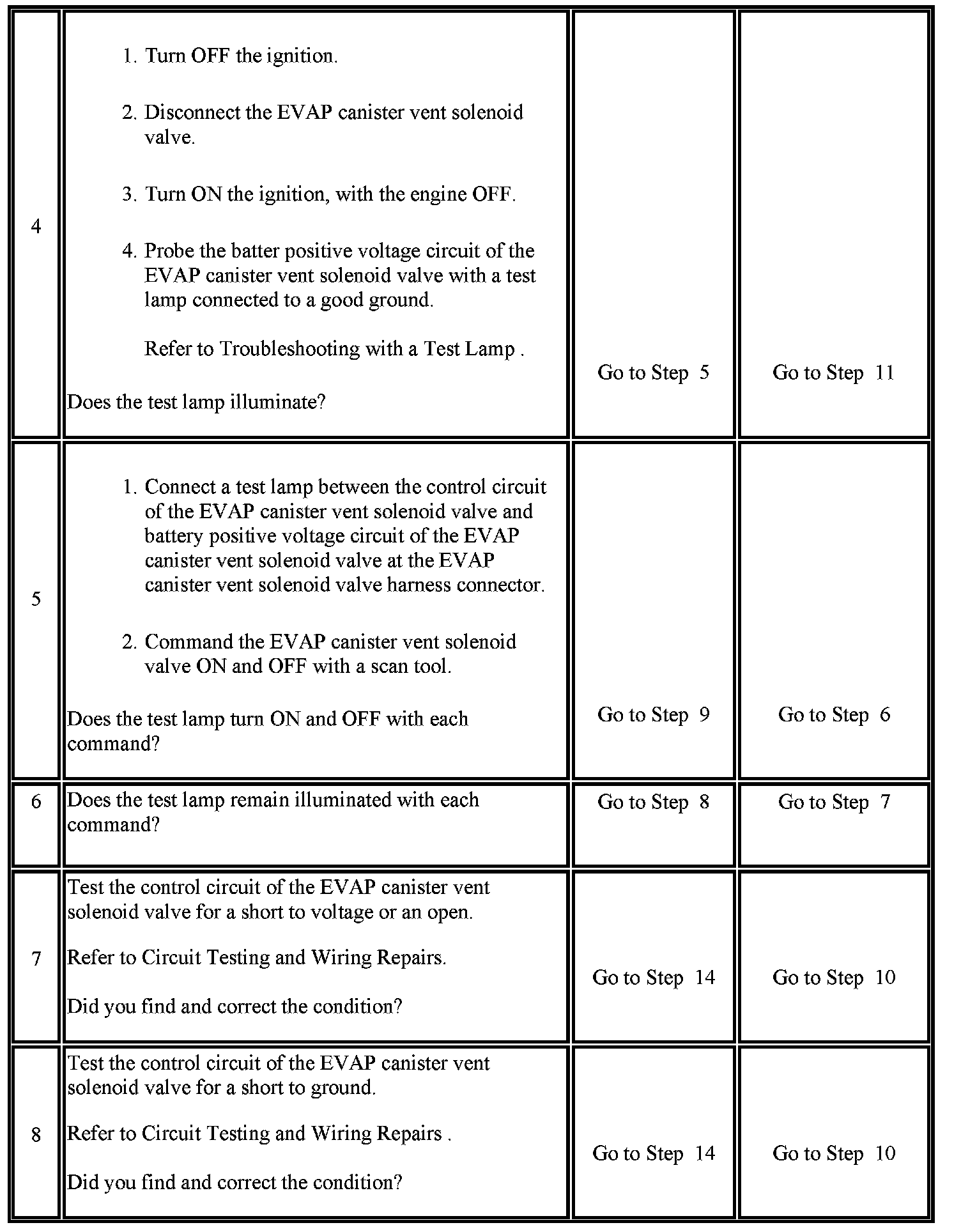 6. This step tests if the EVAP canister vent solenoid valve control circuit is grounded.