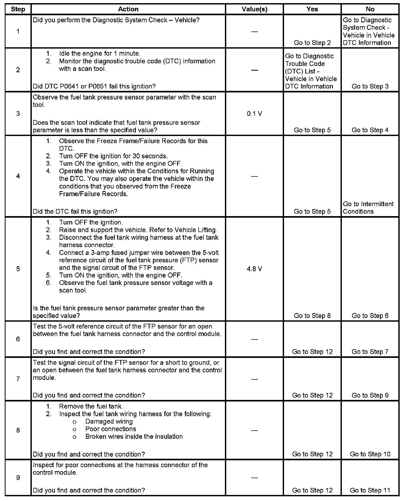- The FTP sensor voltage is less than 0.1 volts.