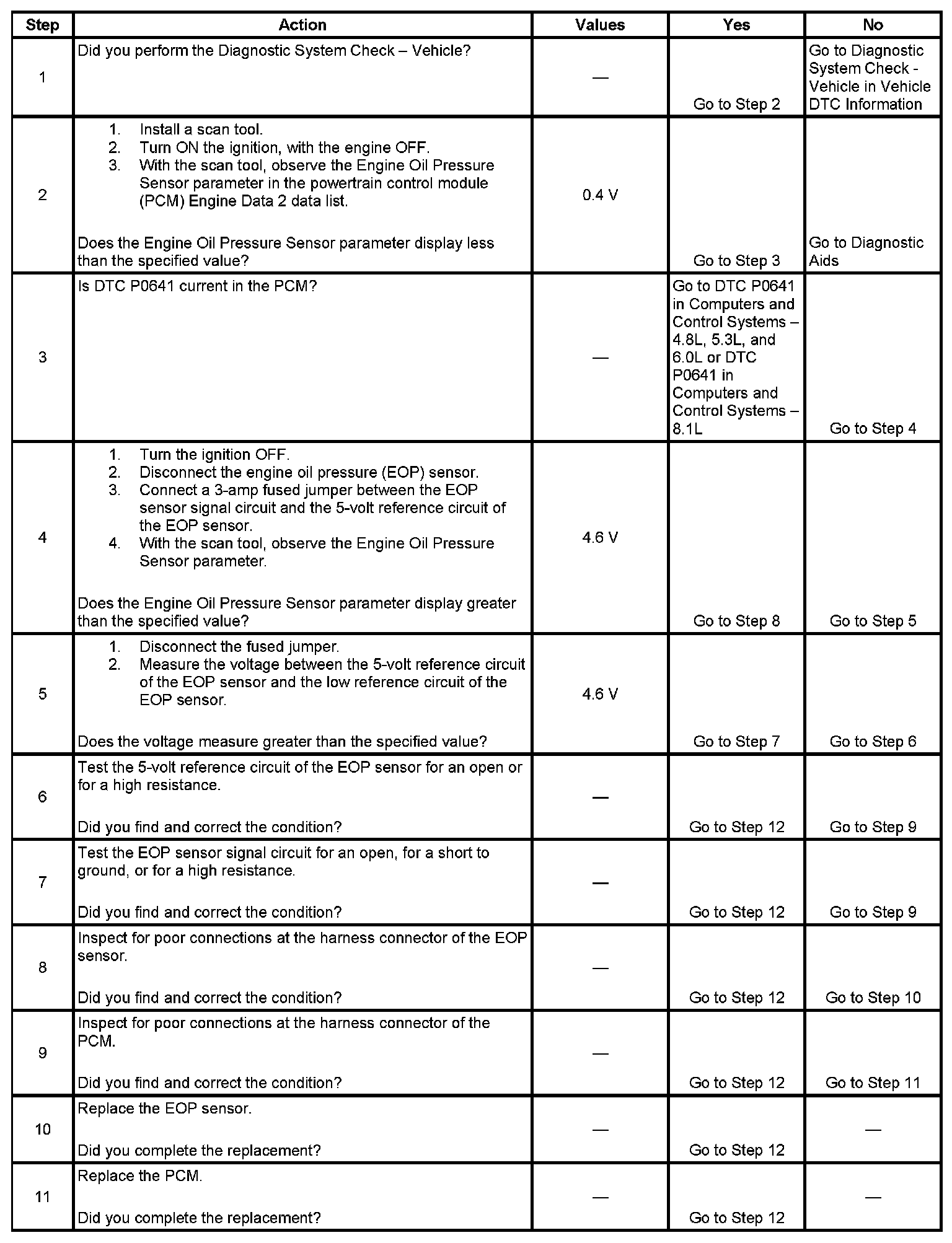 - The PCM detects that the EOP sensor signal circuit is less than 0.4 volts.