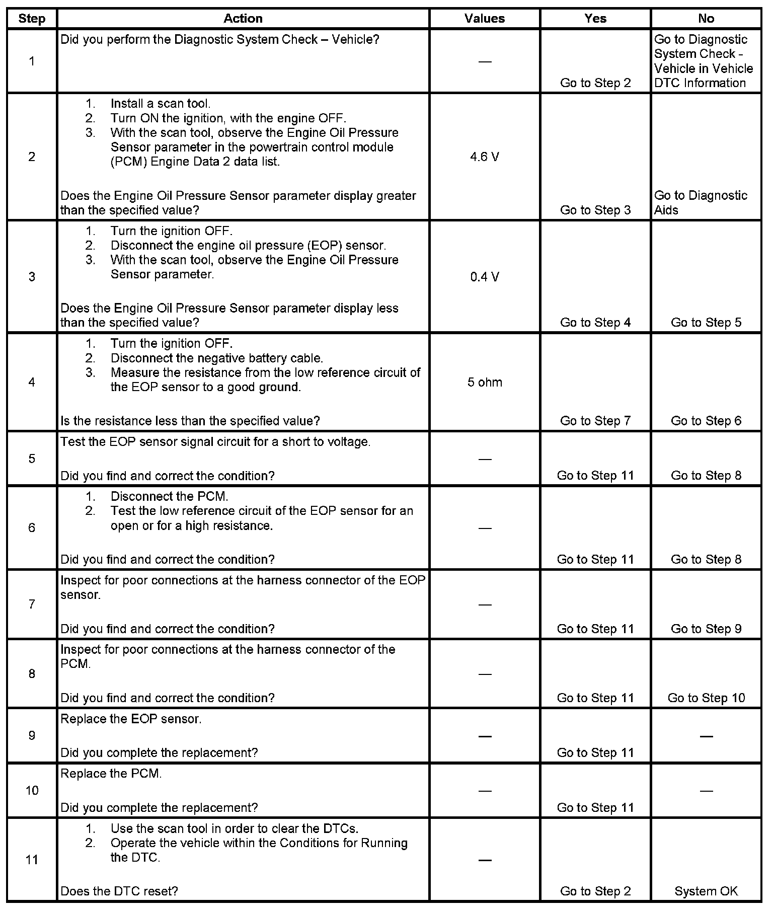 - The PCM detects that the EOP sensor signal circuit is greater than 4.6 volts.
