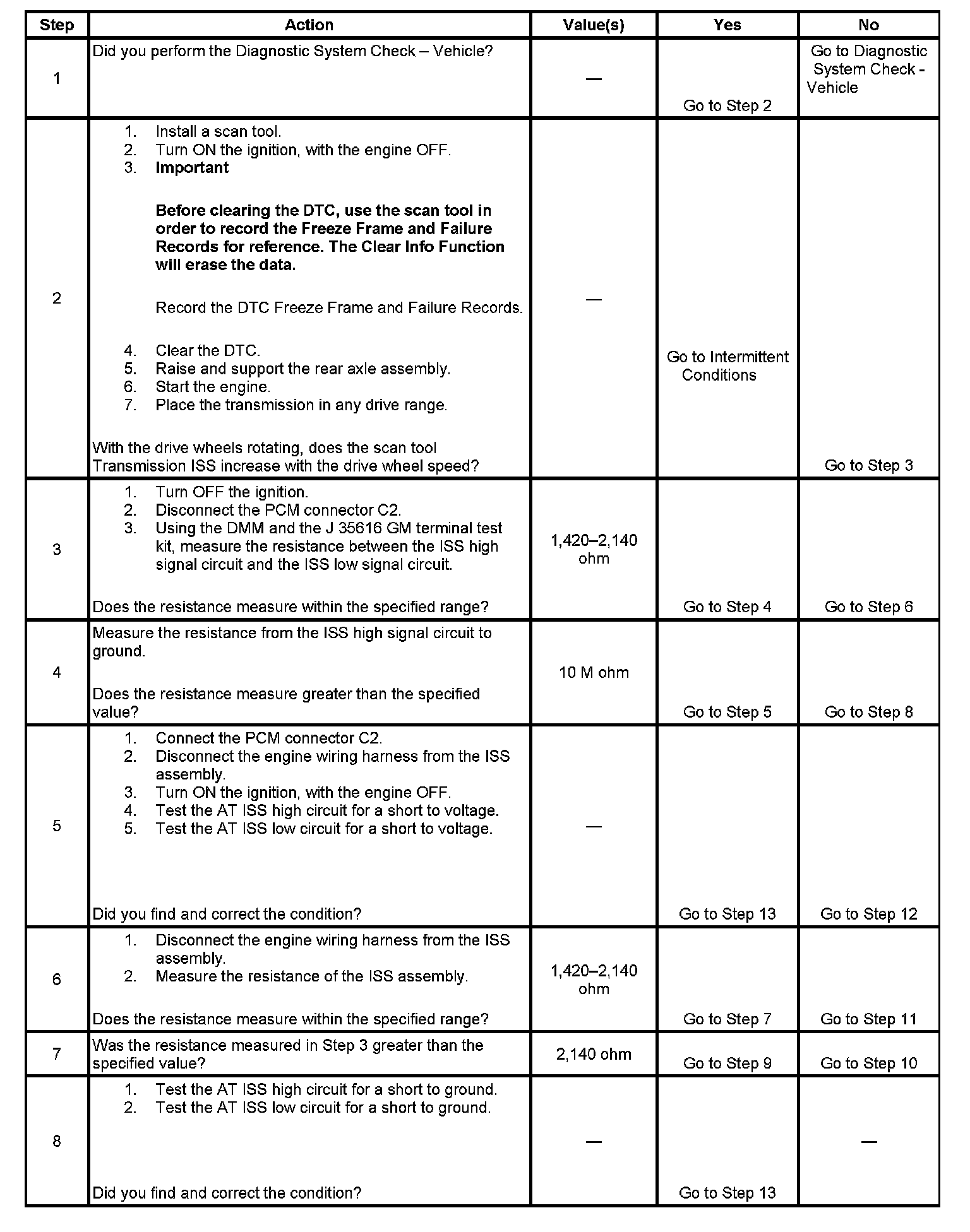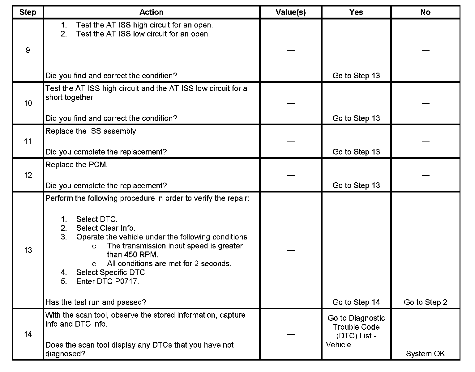 When the PCM detects a low or no input speed during high vehicle and high engine speeds, DTC P0717 sets. DTC P0717 is a type C DTC. For California emissions vehicles, DTC P0717 is a type B DTC.
